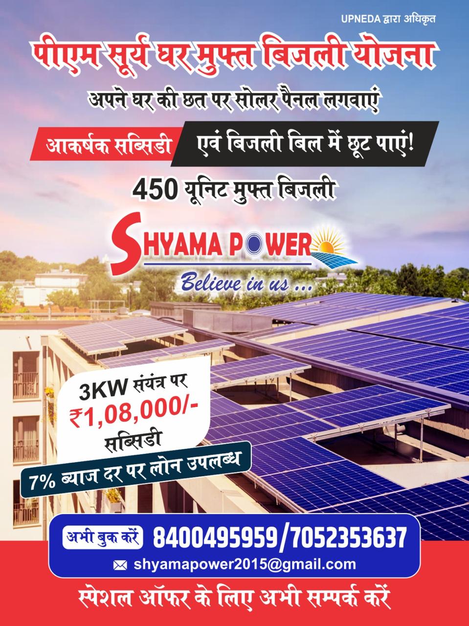 Shyama Power is Uttar Pradesh's trusted solar energy provider, delivering reliable rooftop solar installations, advanced inverter systems, and battery storage for homes, businesses, and industries.